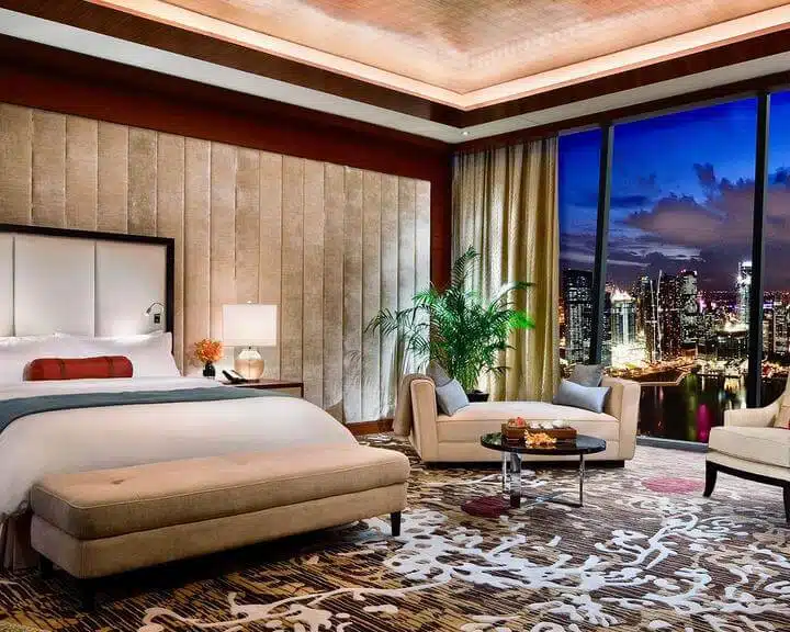 The high ceiling in the lobby is enormous; the service is excellent however did feel a bit lost. But the pool makes it all good again.