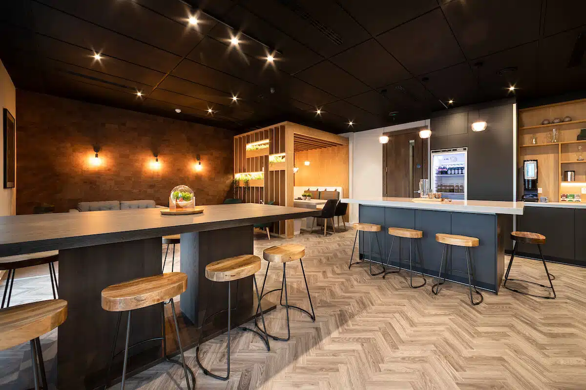 Thoughtfully positioned lighting in a commercial break out space, designed by JIGSAW.