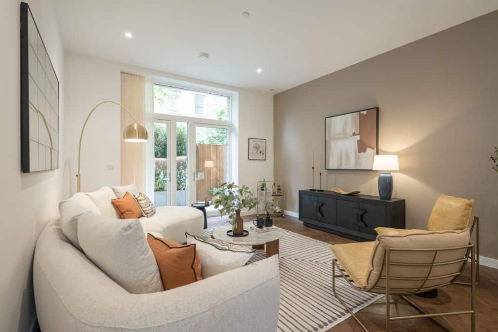 After the quick sale of our first show home at The Delamarre, Brent Cross, we were invited to design a replacement show home in the same development. This apartment was a very similar layout to the previous show home, so we wanted to create something that felt fresh and new whilst still appealing to the design conscious young couples who love the London lifestyle whilst also valuing community, green space and wellbeing.